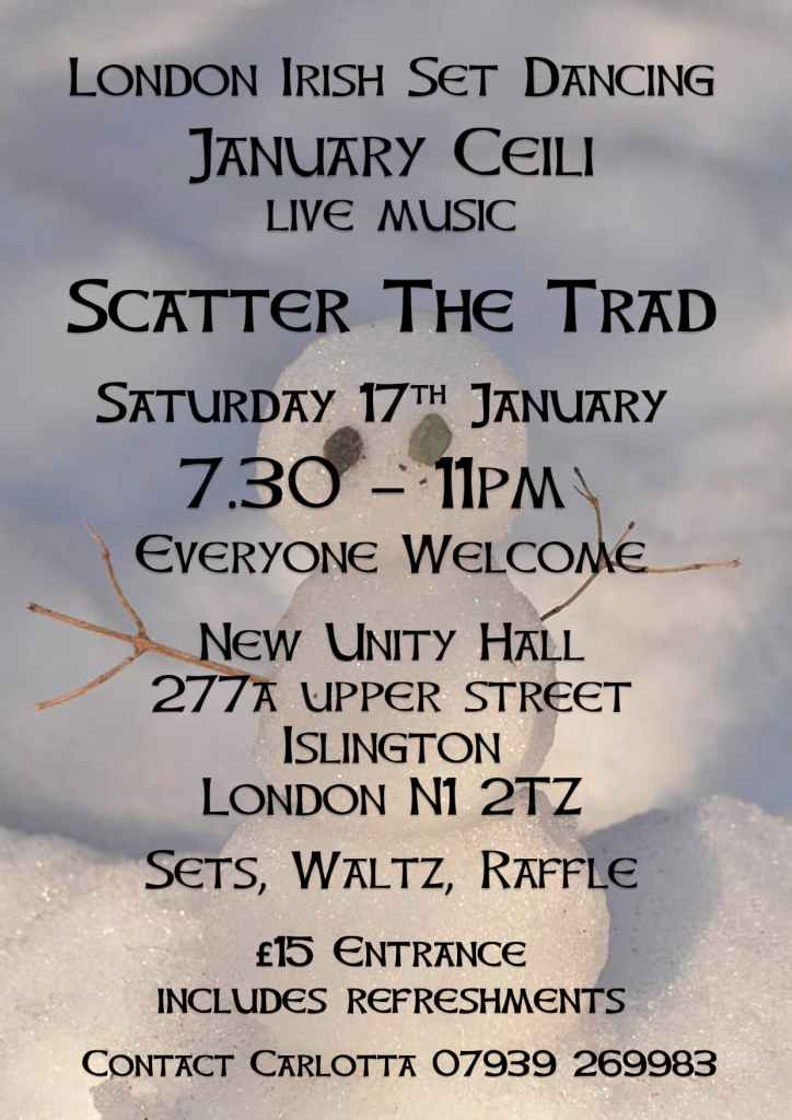We’re also delighted to welcome back Scatter the Trad on Saturday 17 January for our first ceili of the year. It should blow a few cobwebs away and get you ready for the year ahead. See the flyer below and come along for some great quality music and dancing.